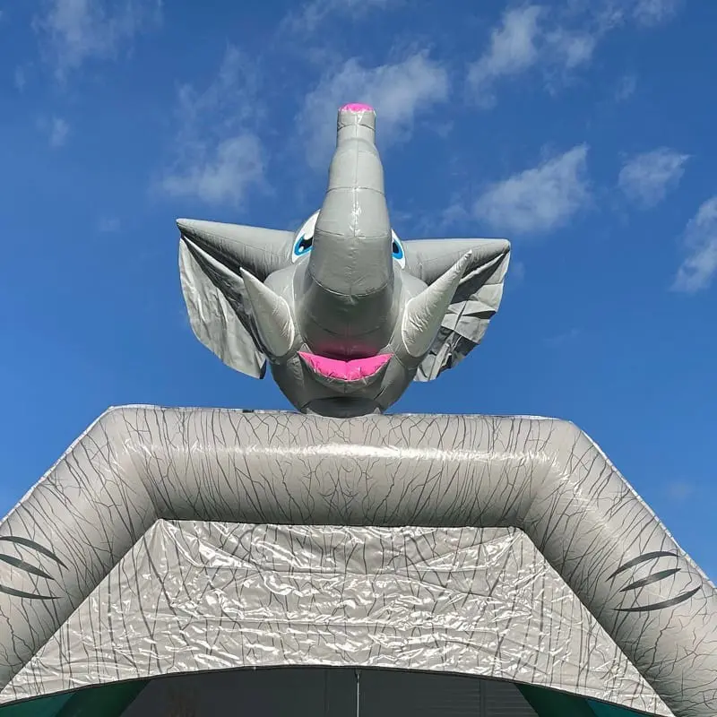 Til byfester og større arrangementer er vores elefant hoppeborg et kæmpe hit.
