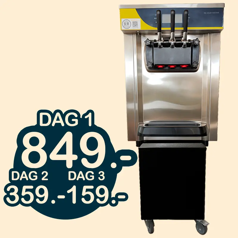 Hos os koster det kun 849 kr. for første dag at få en lækker softice maskine med til din fest. Og har du brug for endnu en dag, så er det bare 359 kr. ekstra. Hvis is-sulten ikke er stillet, kan du også beholde den i flere dage for kun 159 kr. pr. dag.